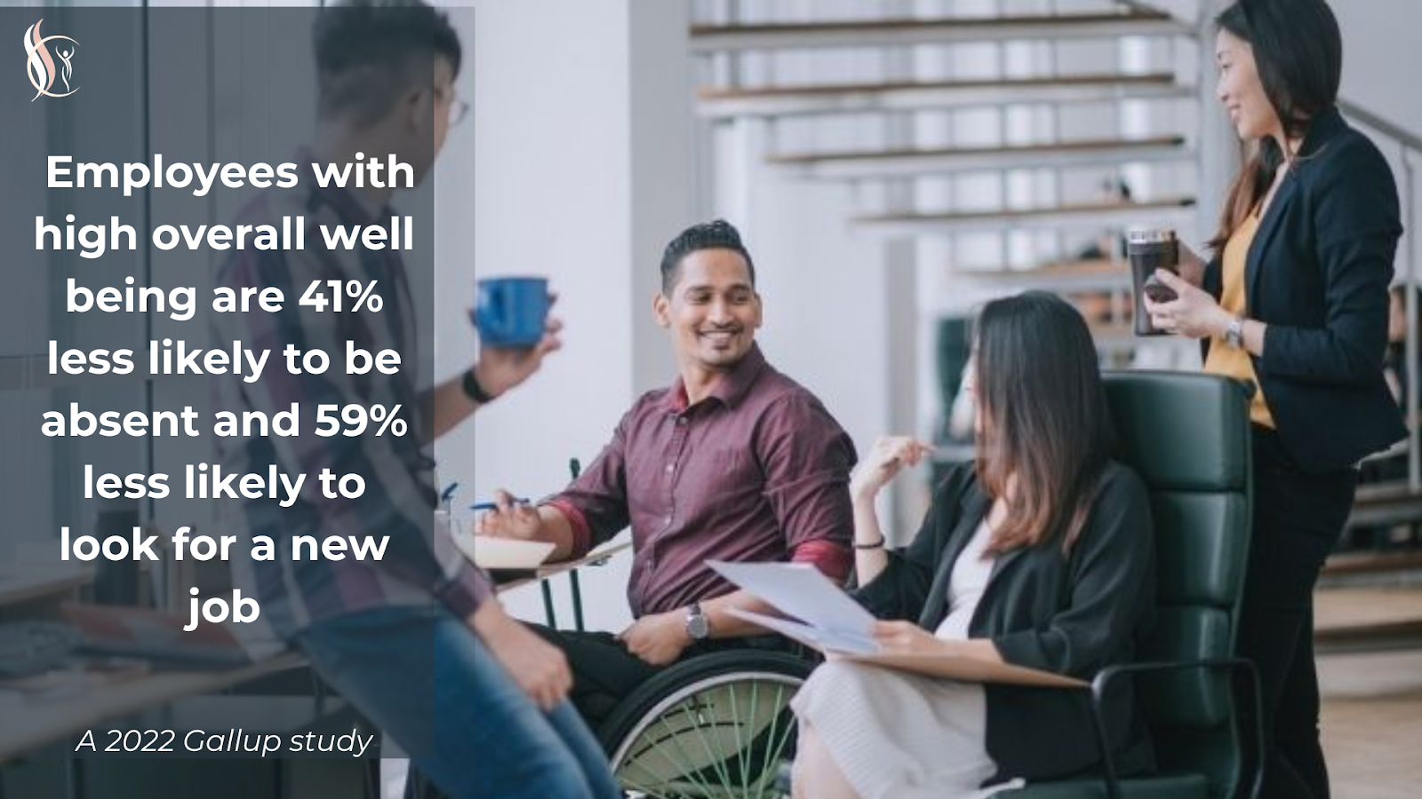 Because we can never truly leave home at home. Stress in our personal lives trickles into our work. A 2022 Gallup study found that employees with high overall well being are 41 percent less likely to be absent and 59 percent less likely to look for a new job. That means the Sarahs of the world do not just stay, they stay engaged.