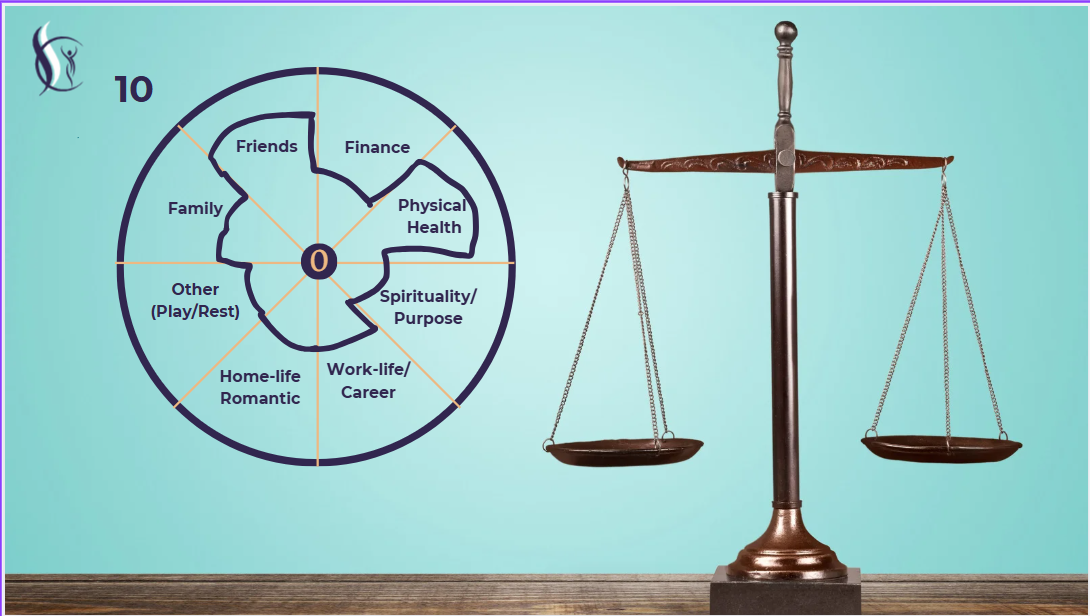 A simple way to determine your current life balance is to fill in the pie chart on a scale from 1-10. One being closest to the center line and 10 closest to the edge, filling up the circle. Afterward, step back and observe the filled circle—does it resemble an actual circle? For many, it may look more like a hexagon at times!
