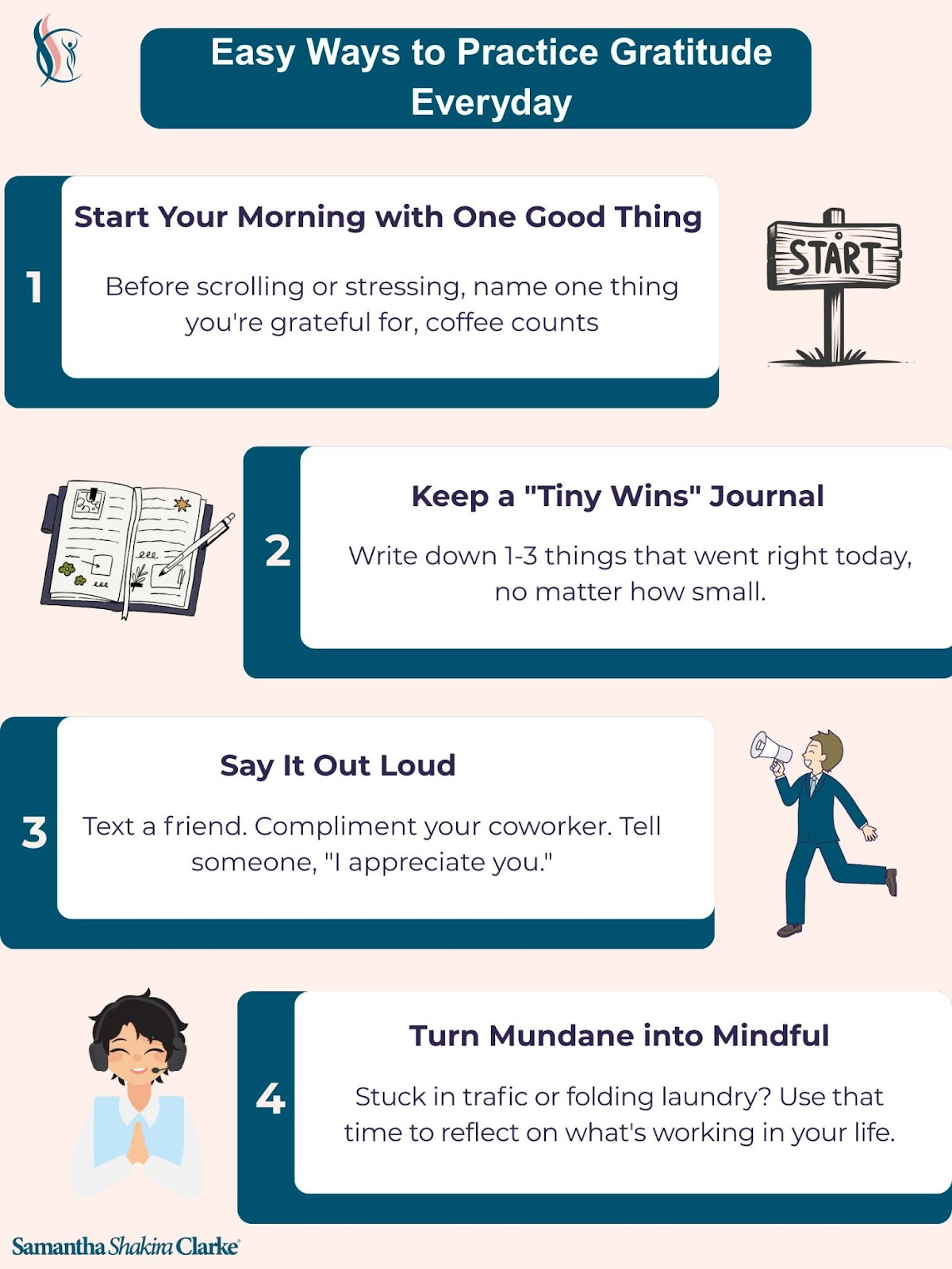 If you’re ready to explore how gratitude and nervous system practices can transform your workplace, we’d love to connect. Please email us at team@samanthashakiraclarke.com or book your discovery call here. Let’s build a culture of safety, resilience, and connection together.
